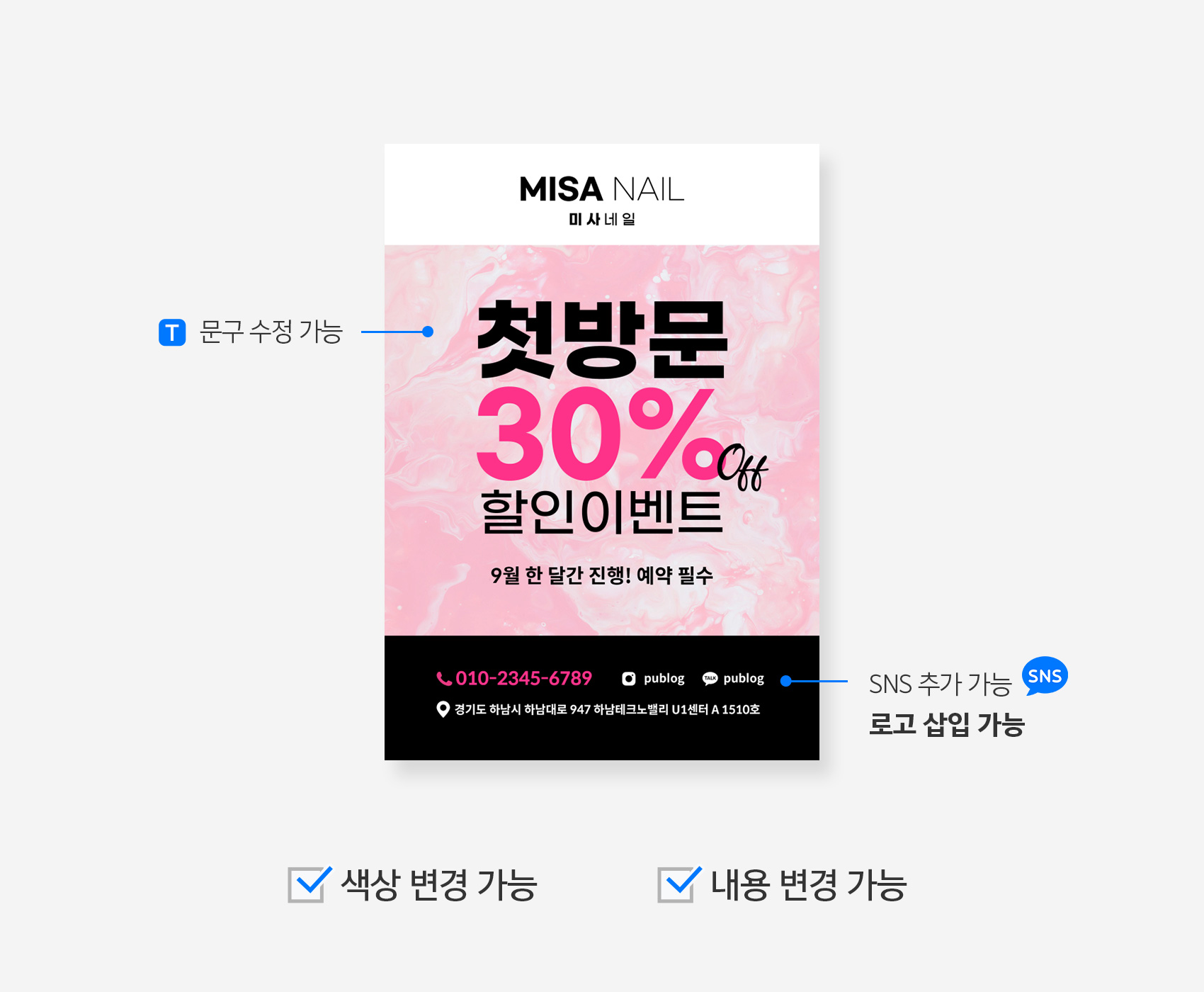 텍스트만 수정하여 간편하게 완성됩니다.